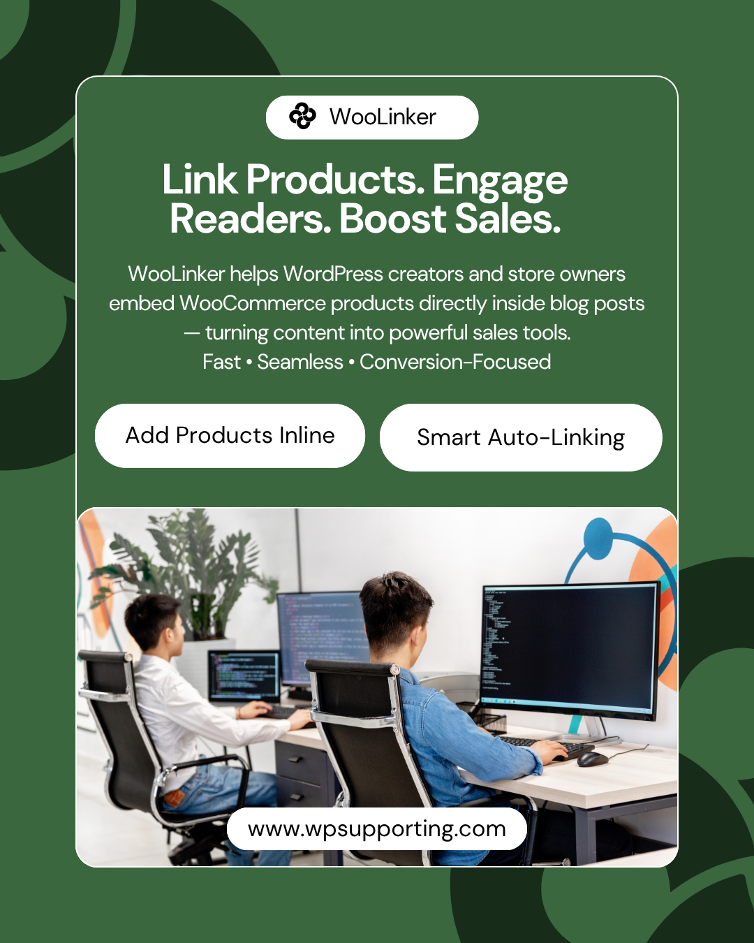 Activate WooLinker and turn every blog post into a direct sales channel — no redirects, no complexity, just smart in-content product linking.